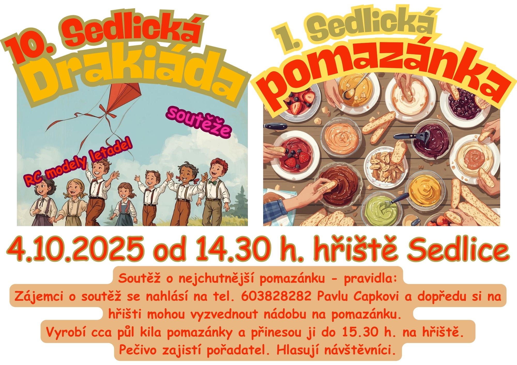 10. Sedlická drakiáda, 1. Sedlická pomazánka od 14h na hřišti v Sedlici