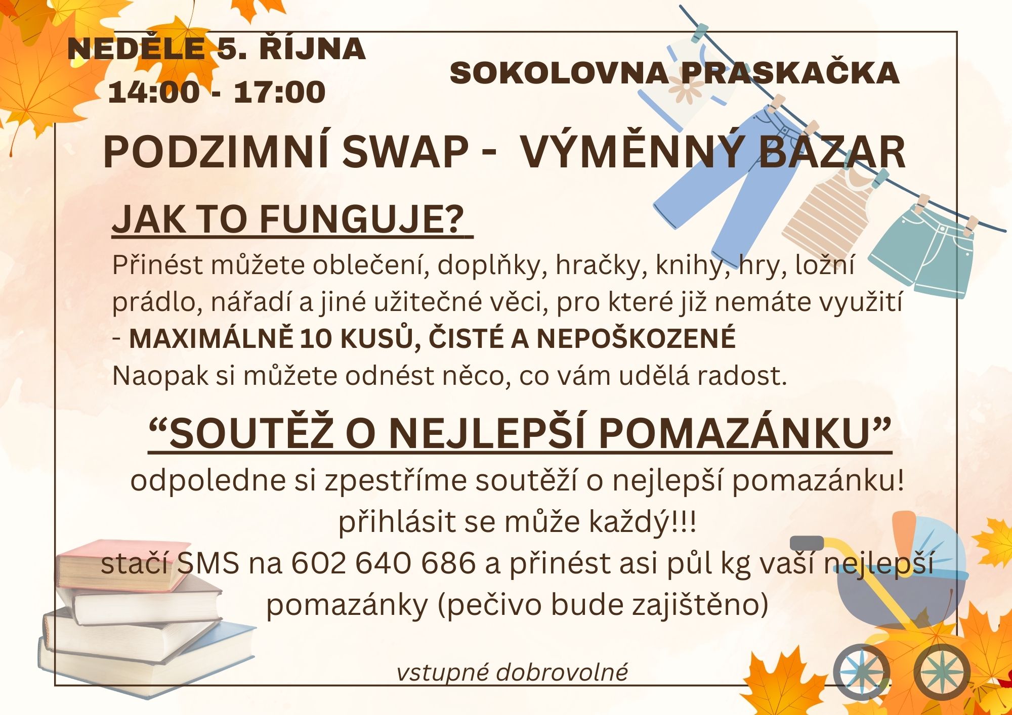 Podzimní SWAP - výměnný bazar, Soutěž o nejlepší pomazánku od 14h.